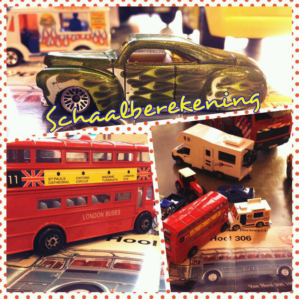 Alle auto's groot en klein van mijn jongste zoon mee naar school genomen. Wat zou de schaal kunnen zijn die hierbij hoort? Kinderen gingen in drietallen hiermee aan de slag. Zo kreeg ieder groepje 3 auto's te zien. Ook waren er meetlinten in de klas. De gevonden schaal schreven ze op een los blaadje. Bij de 4e keer doordraaien moesten ze de gevonden schalen van de andere 3 groepen beoordelen. Zou deze schaal goed kunnen zijn?